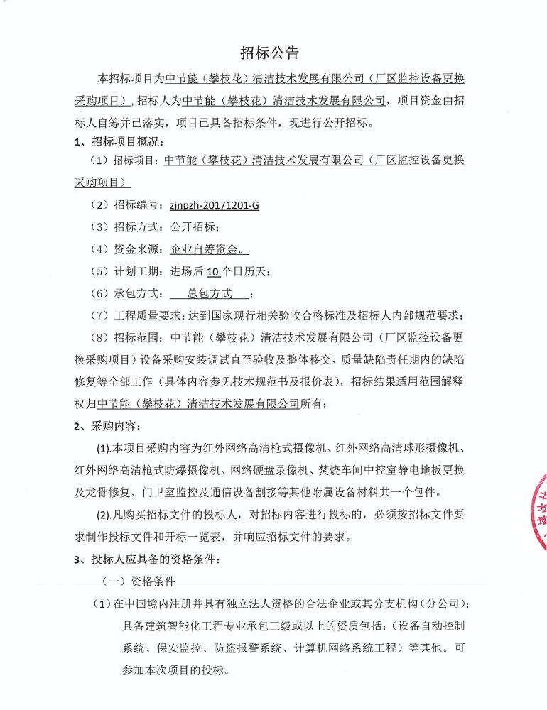 廠區(qū)監(jiān)控設(shè)備更換采購(gòu)項(xiàng)目招標(biāo)公示
