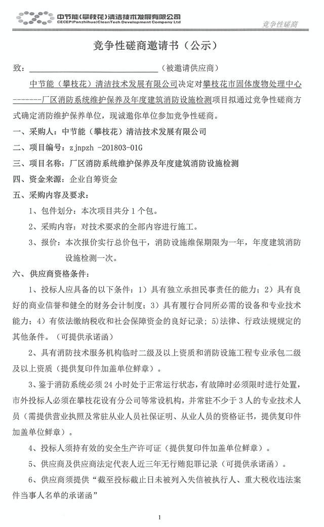 廠區(qū)消防系統(tǒng)維護(hù)保養(yǎng)及年度建筑消防設(shè)施檢測(cè)項(xiàng)目競爭性磋商邀請(qǐng)書(公示)