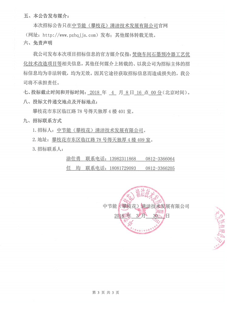 焚燒車間石墨預冷器工藝優(yōu)化技術改造項目招標公告
