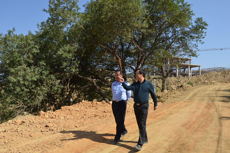 2013年3月14日袁總帶領(lǐng)恒德公司全體員工檢查工地,袁杰總經(jīng)理對項目生活區(qū)、廠區(qū)的生態(tài)建設(shè)作出嚴(yán)格要求,對原有樹木保護(hù)、綠化、排水工作進(jìn)行詳細(xì)布置落實。